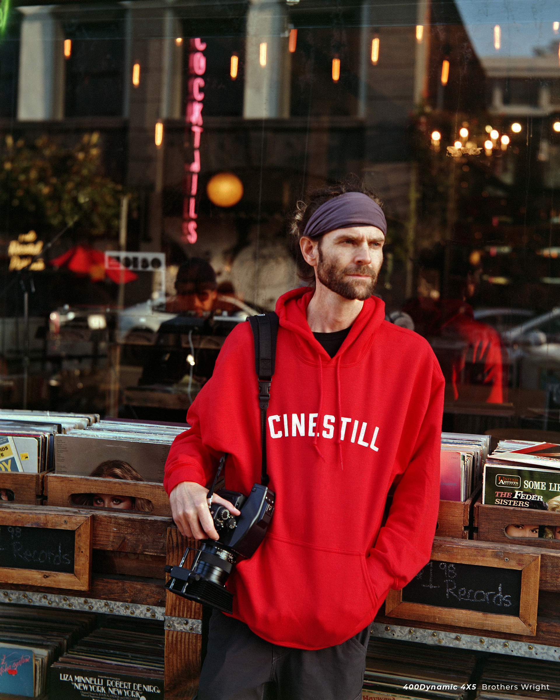 Product Description CineStill 400Dynamic is a fine-grain, daylight-balanced color negative film that delivers a soft color palette with natural saturation and rich, warm skin tones. The film has a wide dynamic range with a base sensitivity of ISO 400, but can be rated from 200 to 800 (without push processing) and pushed up to 3200. This makes the film highly versatile, usable both indoors or in the studio, under virtually any lighting conditions. The base of the film is thinner (~5-mil thick acetate base) than most other 4×5 films (~7-mil thick polyester base). The thinner base may require extra care when handling, loading into film holders, and loading into developing tanks, but it hasn’t proven to pose any major issues for past testers. We’ve tested a variety of at-home and commercial 4×5 color processing options, including hanger-type dip-and-dunk processors, the JOBO 2509N reels, the Stearman Press SP-445 tank system, and tray processing — all of which worked well with 400D 4×5. We found that the Mod54 reels for the Paterson 3-reel tanks may present some compatibility issues. Specifically, we’ve found that it’s possible for the innermost sheets to back out of the tracks with moderate agitation.